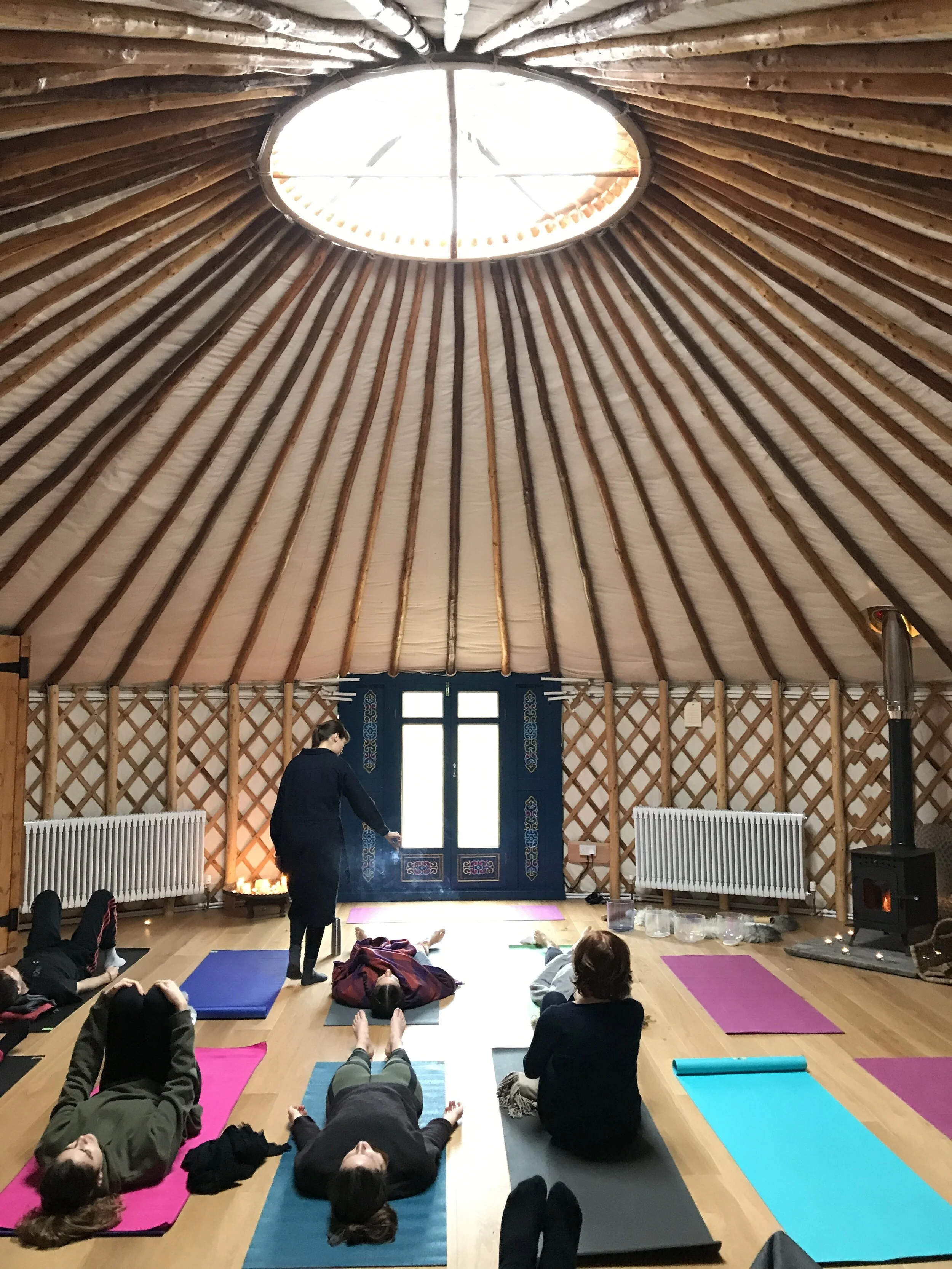 She teaches a slow, mindful flow, prefaced with some kind of pranayama to draw people to the inner world. She’s interested in finding different ways to explore the body, seeking different words to communicate and new experiences to awaken. She closes classes singing with crystal bowls, to create a nourishing space for people to soften more deeply into themselves.